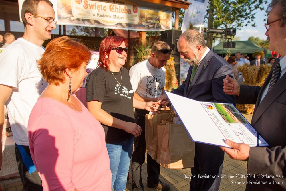 Mszę świętą dożynkową odprawił w Kościele pw. Matki Boskiej Szkaplerznej w Radowie Małym ks. kanonik Grzegorz Kalamarz, natomiast Gospodarzami dalszego ciągu ceremonii dożynkowej byli: Jan Zdanowicz Wicestarosta oraz Józef Wypijewski Wójt Radowa Małego. Starostowie Dożynek - Bogusław Sowiński oraz Lilianna Ligęza reprezentowali najważniejszą w tym dniu grupę mieszkańców naszego powiatu - rolników. muzyka i tańce ludowe oraz przepiękna w tym dniu pogoda, to esencja powiatowego "Święta Chleba".