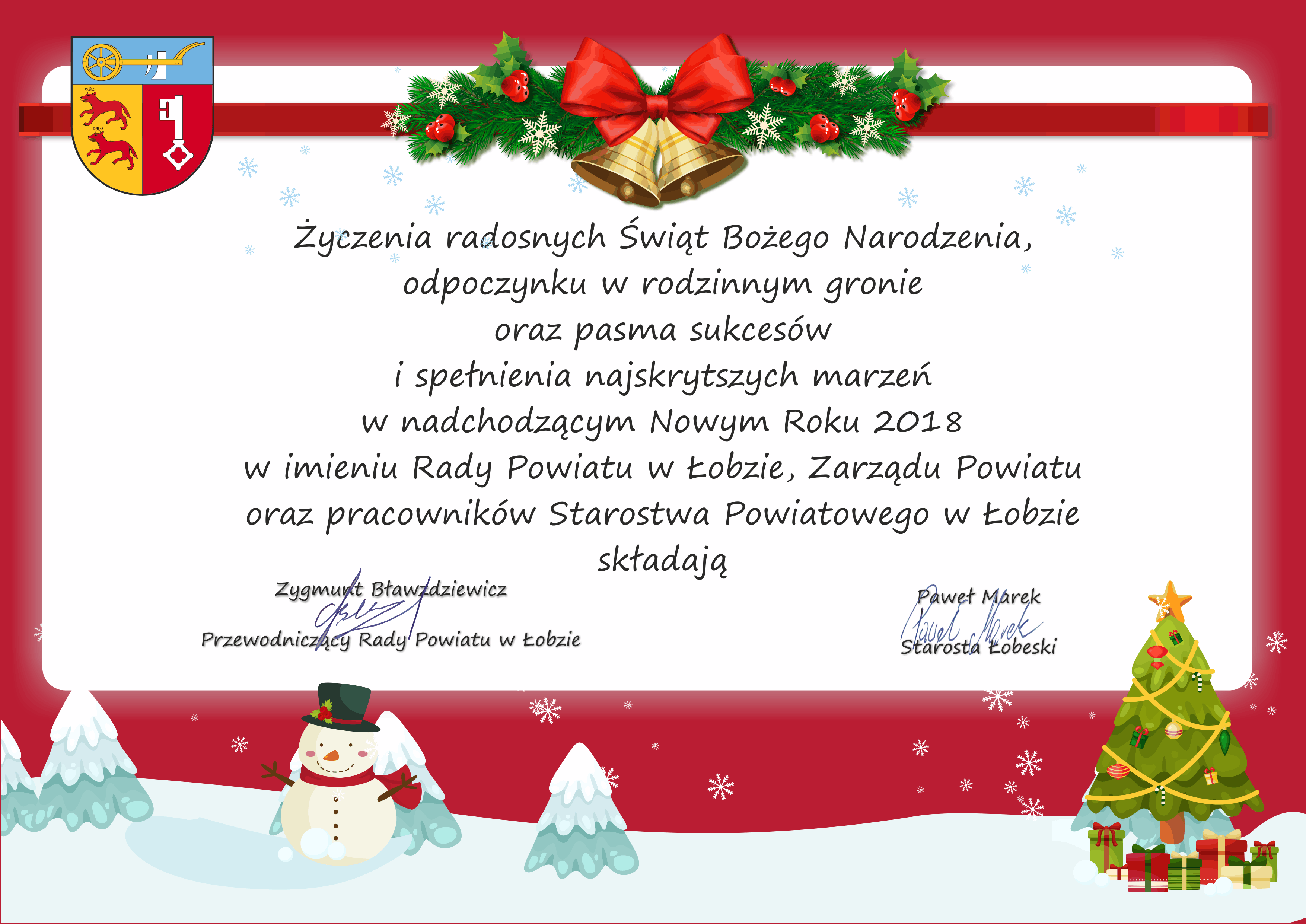 Składamy wszystkim mieszkańcom naszego powiatu