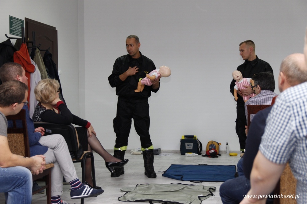 W dniu 04 października 2017 r. w sali konferencyjnej Starostwa Powiatowego w Łobzie odbyło się szkolenie komendantów Powiatowych Formacji Obrony Cywilnej. Zgodnie z § 3 pkt 4 rozporządzenia Rady Ministrów z dnia 25 czerwca 2002 r. w sprawie szczegółowego zakresu działania Szefa Obrony Cywilnej Kraju, szefów Obrony Cywilnej województw, powiatów i gmin, w związku z § 3 ppkt 2 litera e Wytycznych Szefa Obrony Cywilnej Kraju z dnia 11 stycznia 2016 r. w sprawie zasad organizacji i sposobu przeprowadzenia szkoleń w zakresie obrony cywilnej, obowiązkowemu szkoleniu podlegają komendacji powiatowych formacji obrony cywilnej. Organizatorem szkolenia był Wydział Bezpieczeństwa i Zarządzania Kryzysowego w Zachodniopomorskim Urzędzie Wojewódzkim w Szczecinie przy współpracy Stanowiska ds. Obronnych i Zarządzania Kryzysowego Starostwa Powiatowego w Łobzie. Szkolenie pozwoliło zapoznać komendantów Formacji OC z ich podstawowymi aktami prawnymi dot. realizacji zadań co w dalszej kolejności ułatwi szkolenie całego składu osobowego utworzonych Formacji OC. Po cześci teoretycznej, uczestnicy szkolenia przeszli do cześci praktycznej. Każdny uczestnik miał możliwość posługiwania się sprzętem łączności i rozpoznania skażeń. Dzięki życzliwości Komendanta Powiatowego Państwowej Straży Pożarnej w Łobzie uczestnicy mogli przećwiczyć pod okiem ratowników udzielanie pierwszej pomocy przedmedycznej z wykorzystaniem manekinów.